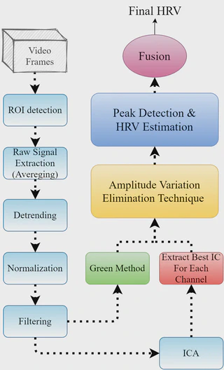 A computer vision–based system for estimating heart rate from facial RGB videos without physical contact.